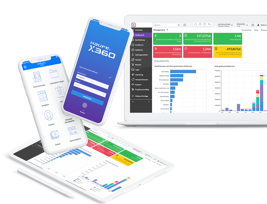 Mit Haufe X360 bündeln Sie Ihre Geschäftsprozesse in einem zentralen System – cloudbasiert, modular, flexibel. Ob Finanzen, Lager, Produktion oder CRM: Sie steuern alles in Echtzeit, standortunabhängig und DSGVO-konform.
