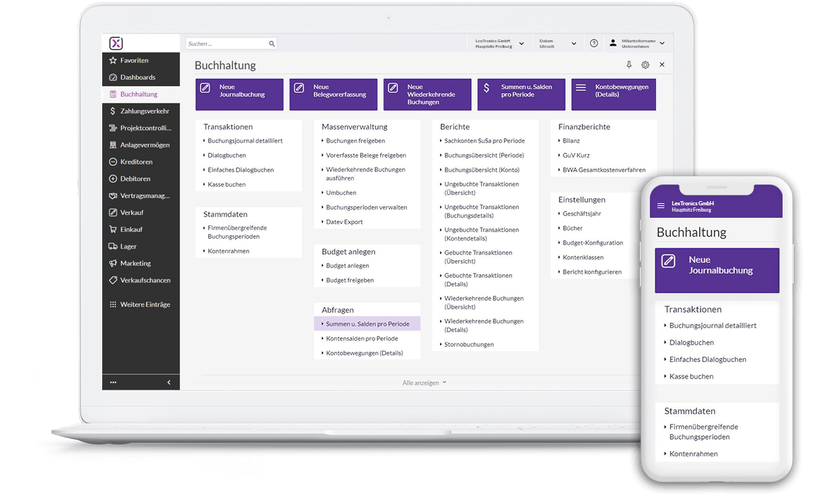 Alle Zahlen zentral im Blick – von Buchungen über Mahnwesen bis hin zu Kostenstellen.